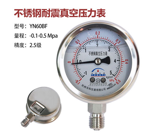 不銹鋼耐震真空壓力表YN60BF